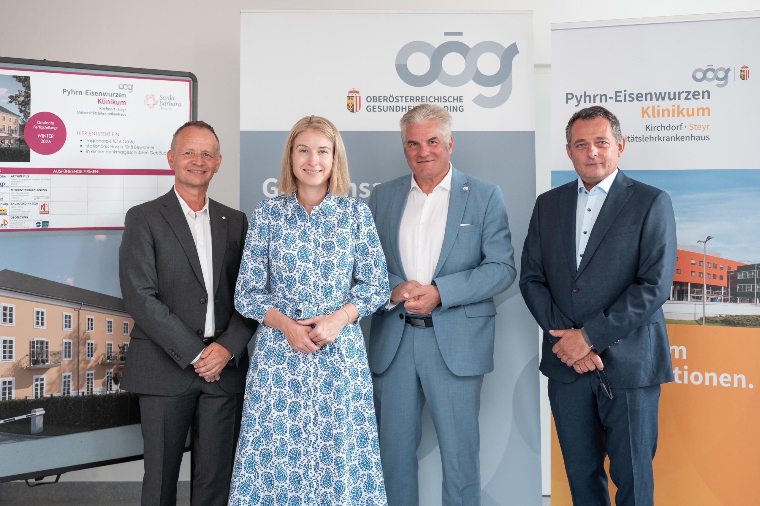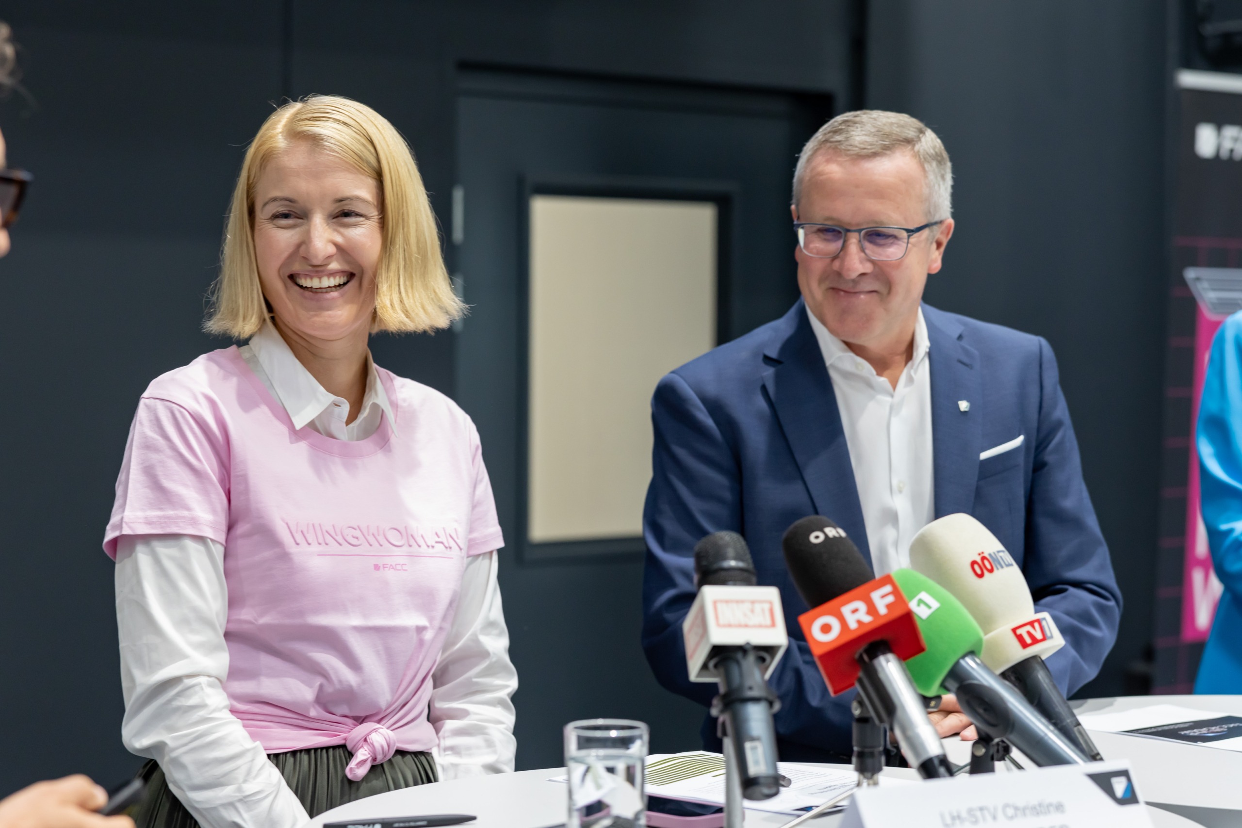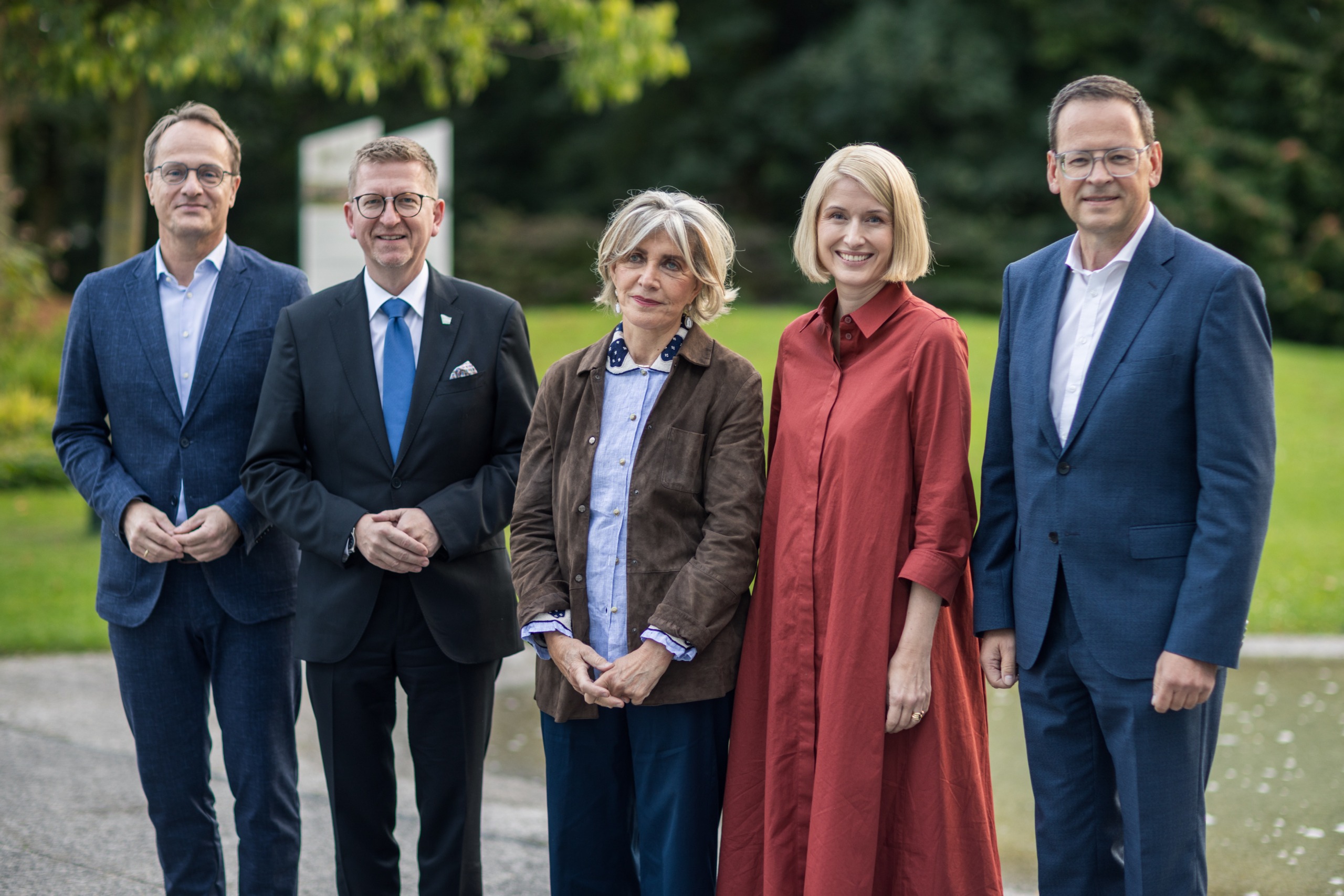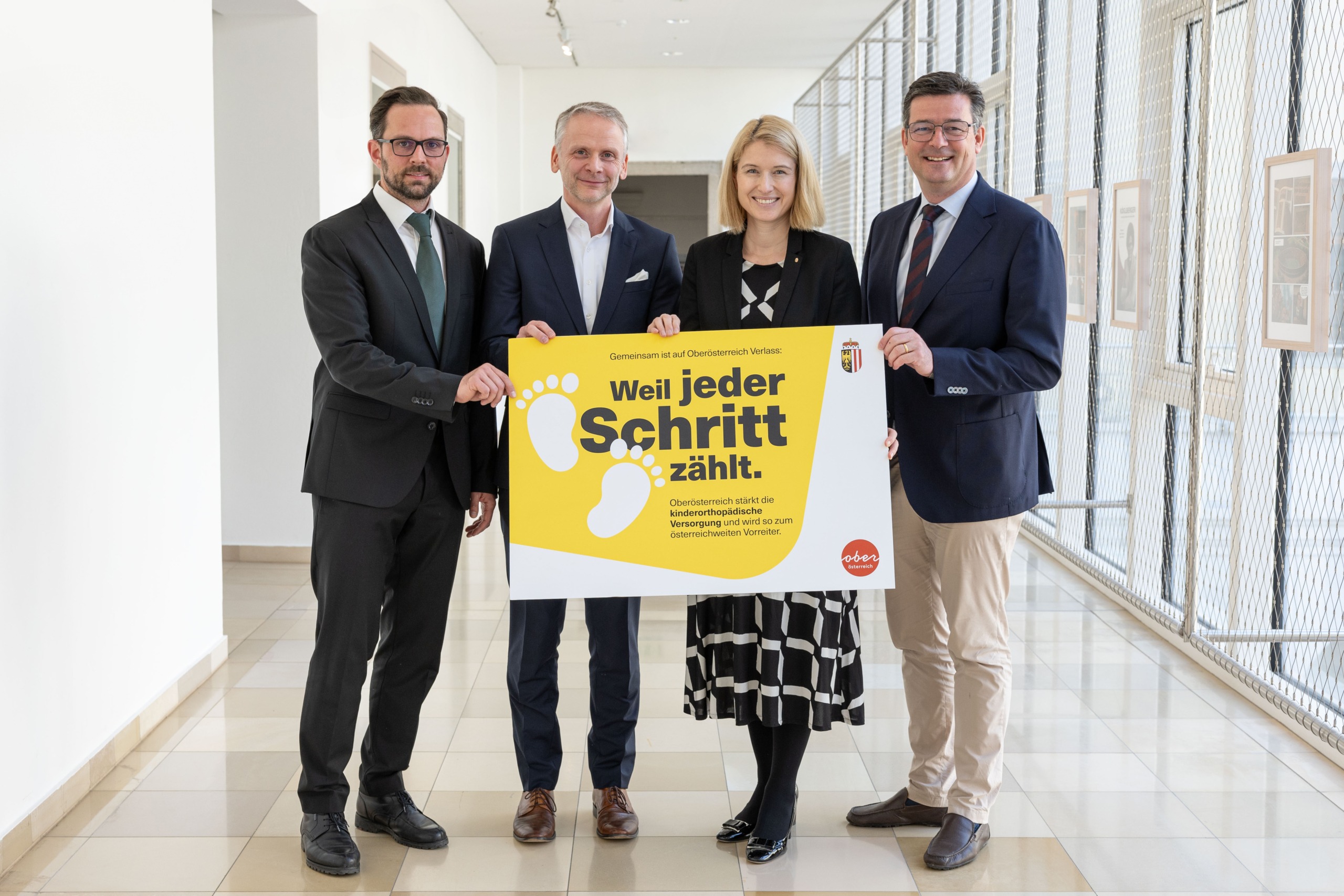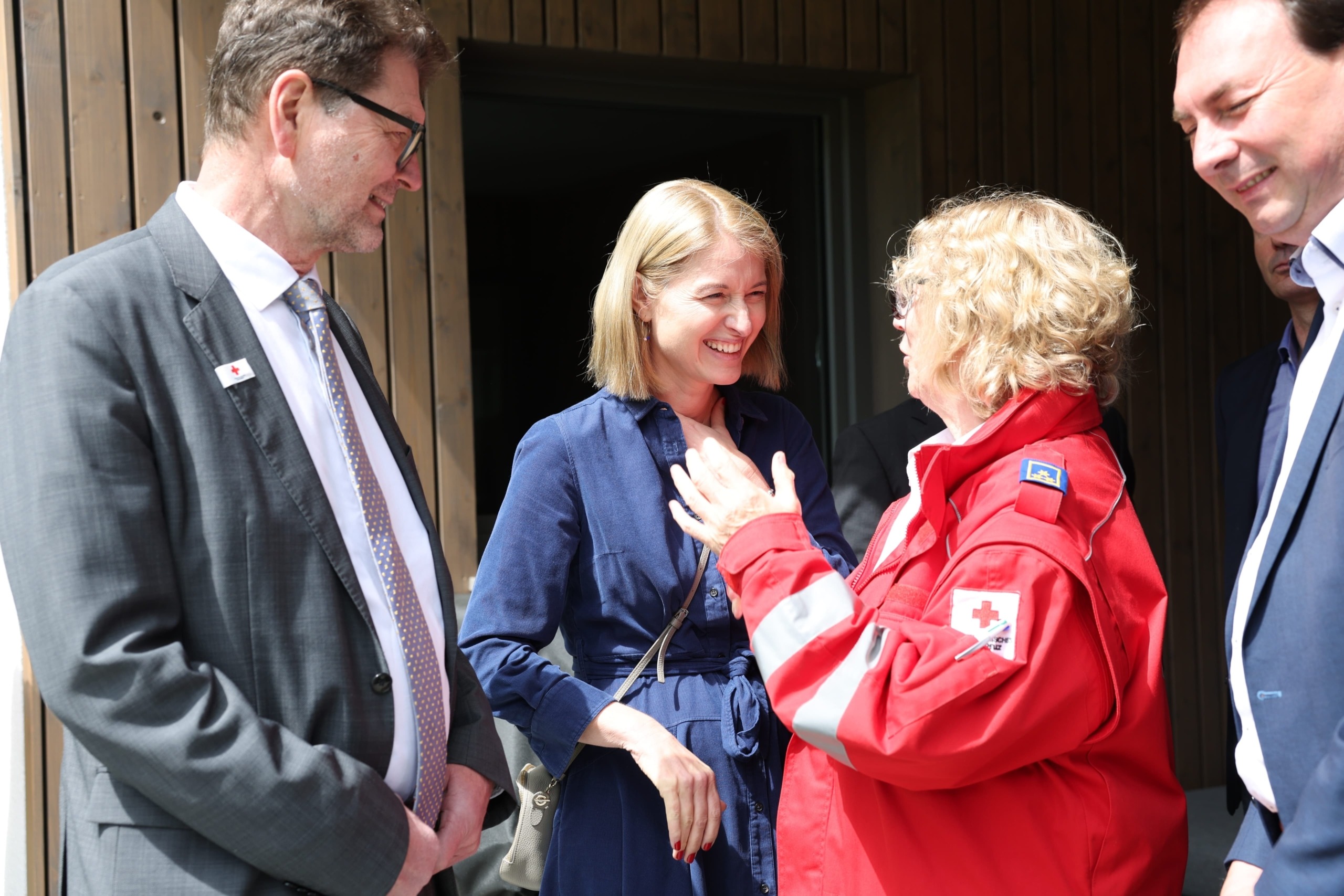 Im Bild: Thomas Märzinger, Landesgeschäftsleiter-Stv. OÖ. Rotes Kreuz / Gesundheitslandesrätin & LH-Stellvertreterin Mag.a Christine Haberlander / Dipl.-Päd. Gottfried Hirz, Präsident des OÖ. Roten Kreuzes bei der Pressekonferenz des OÖ Roten Kreuzes zum Thema „Emergency Eye – Digitale Unterstützung, wenn jede Sekunde zählt“. Aufgenommen am 8. August 2025.