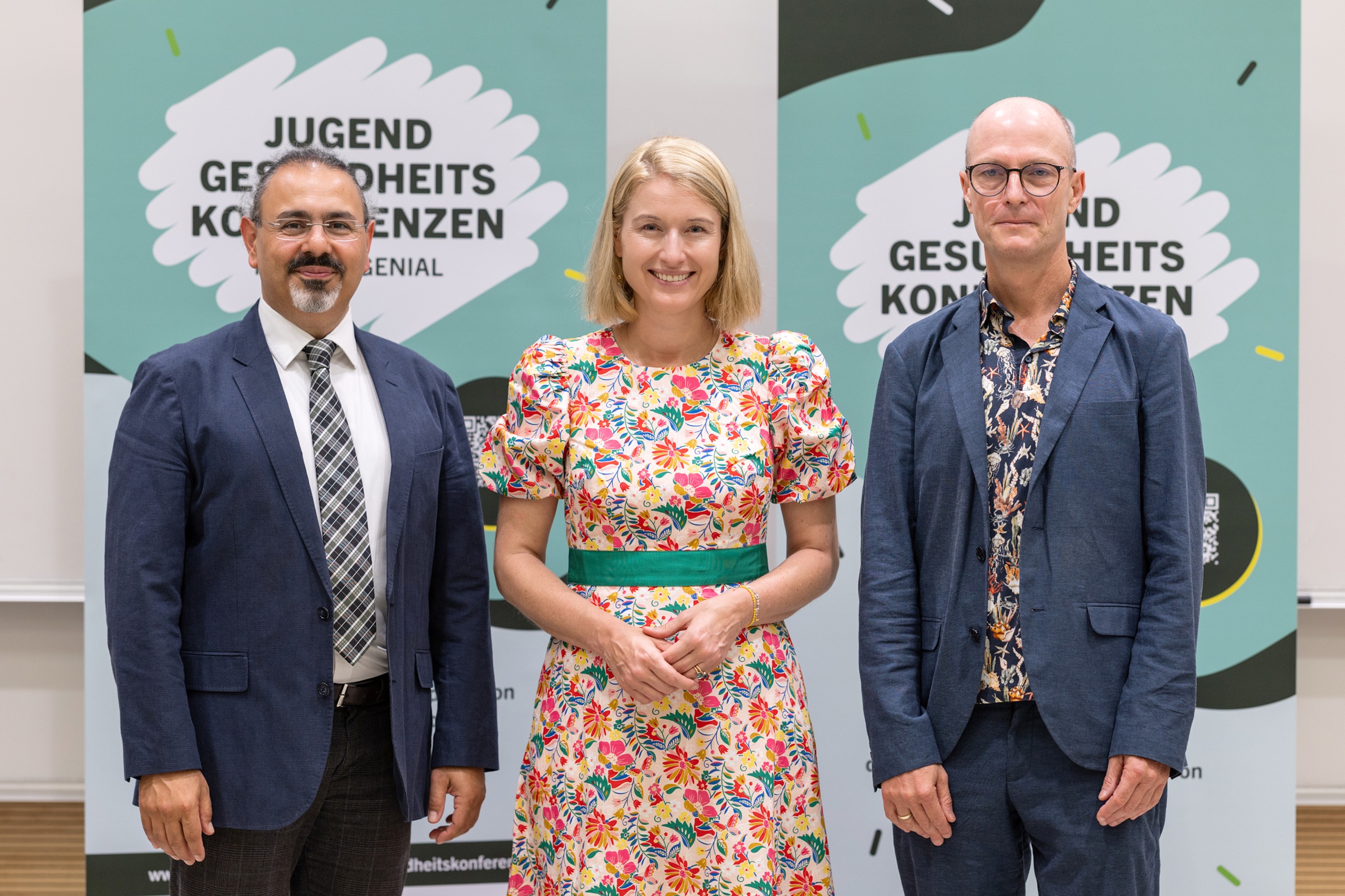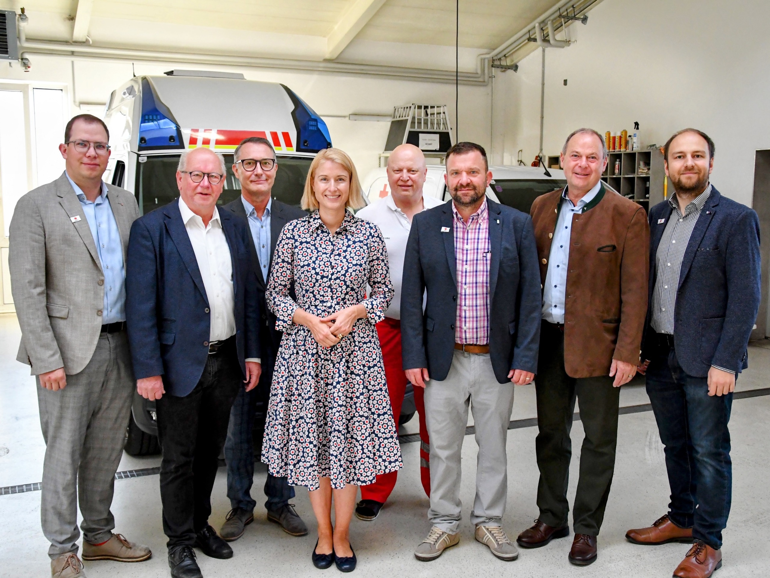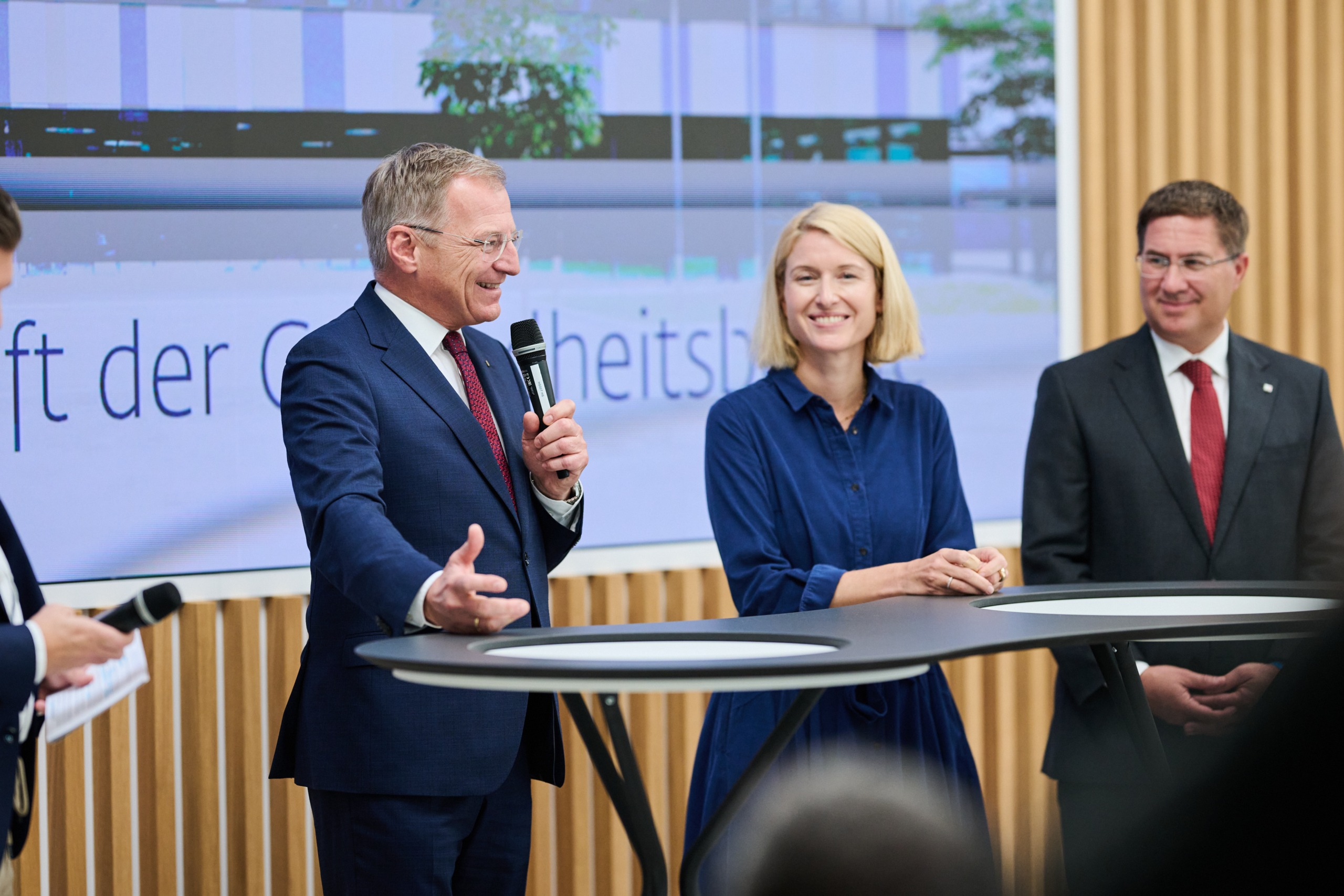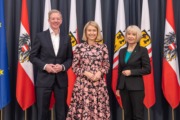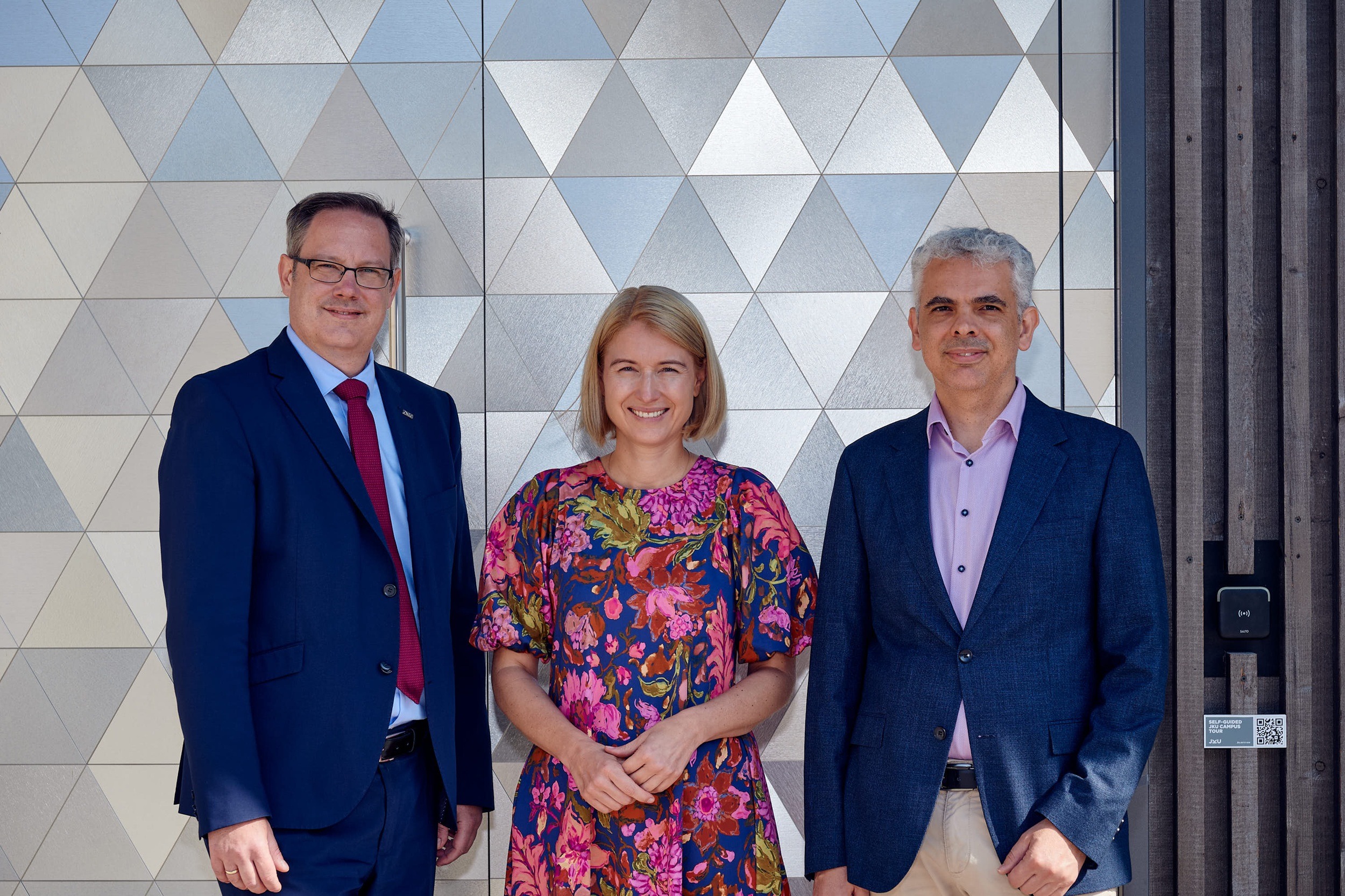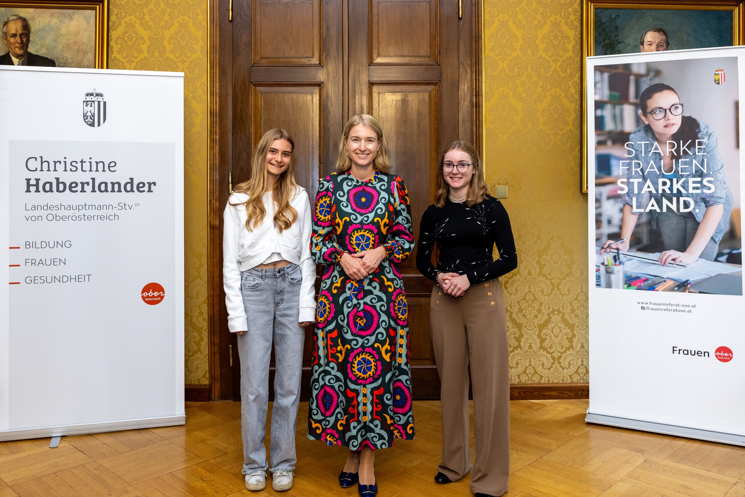 Im Bild: Thomas Märzinger, Landesgeschäftsleiter-Stv. OÖ. Rotes Kreuz / Gesundheitslandesrätin & LH-Stellvertreterin Mag.a Christine Haberlander / Dipl.-Päd. Gottfried Hirz, Präsident des OÖ. Roten Kreuzes bei der Pressekonferenz des OÖ Roten Kreuzes zum Thema „Emergency Eye – Digitale Unterstützung, wenn jede Sekunde zählt“. Aufgenommen am 8. August 2025.