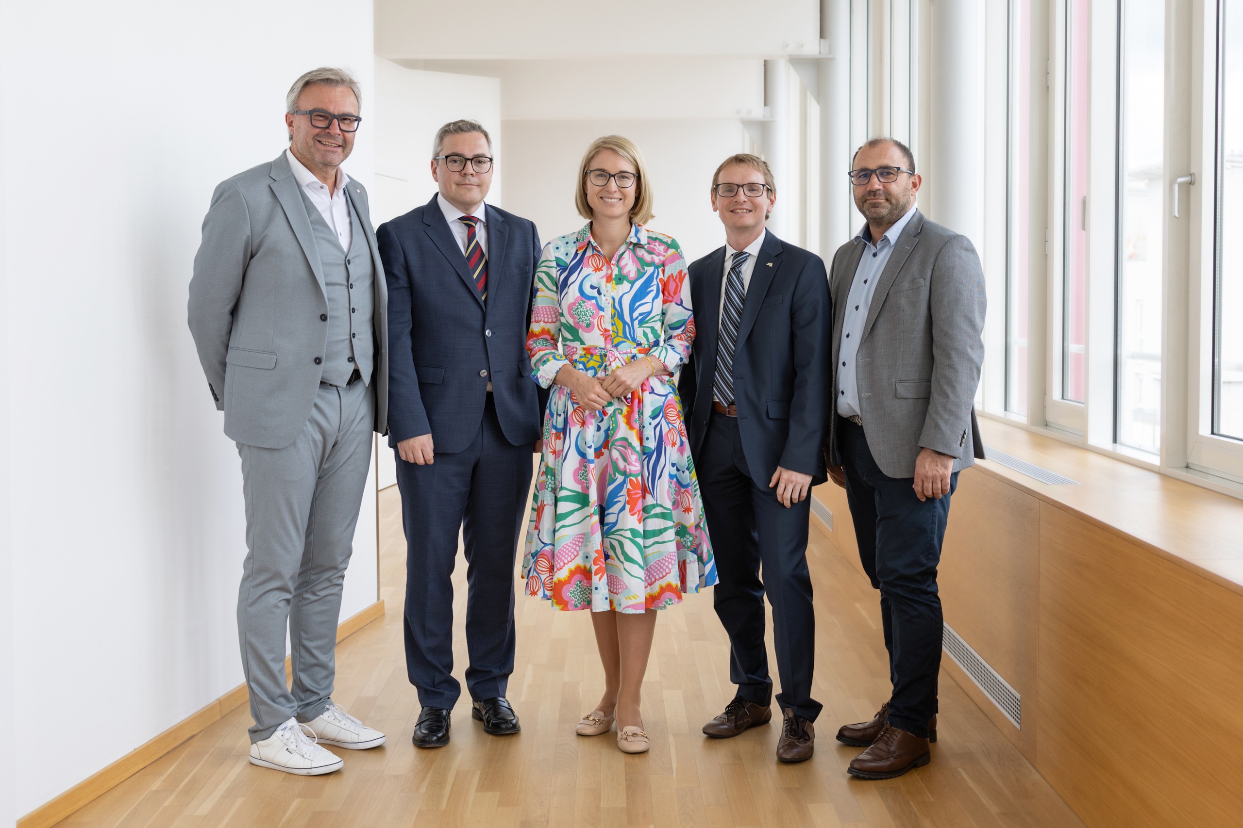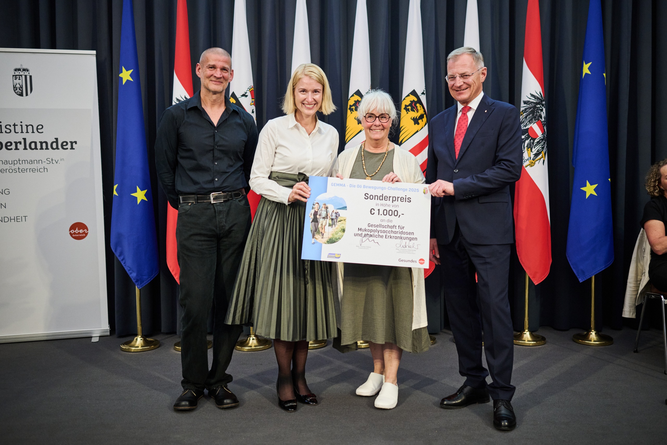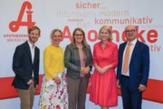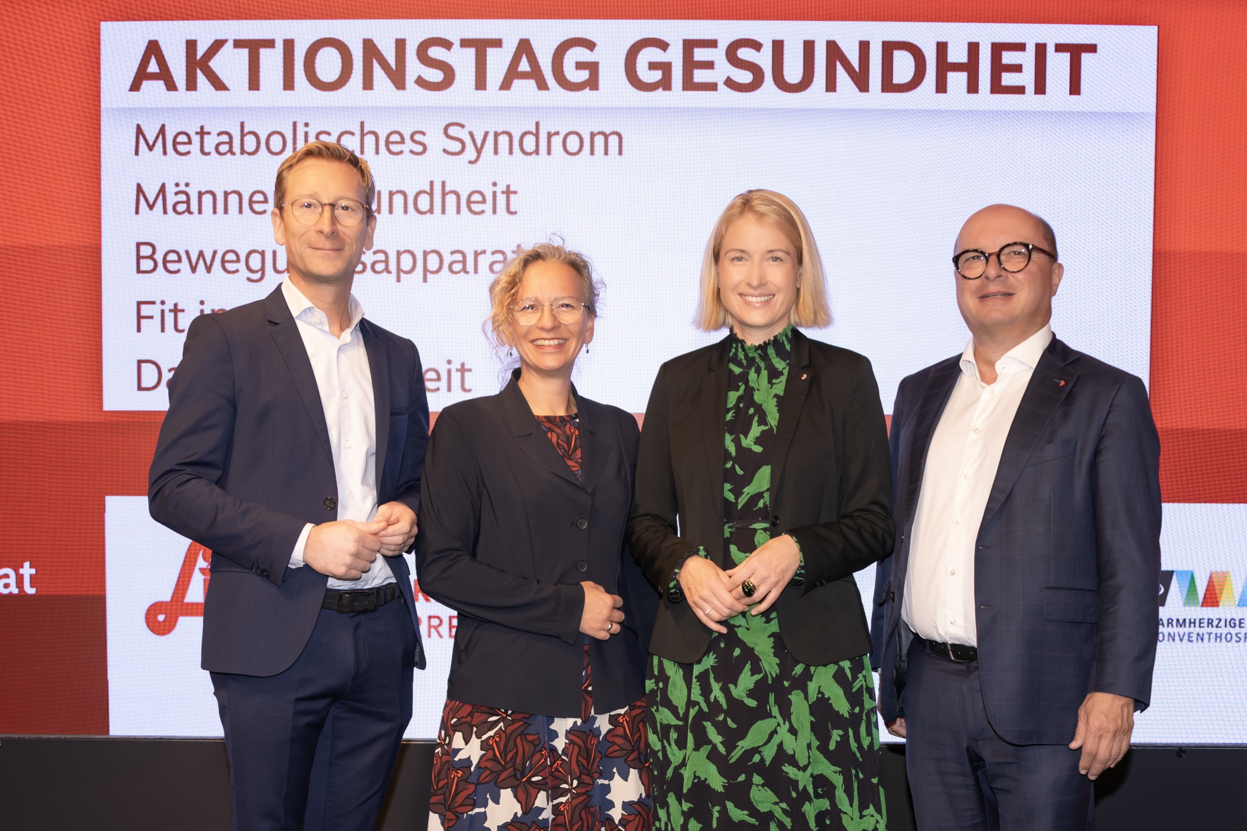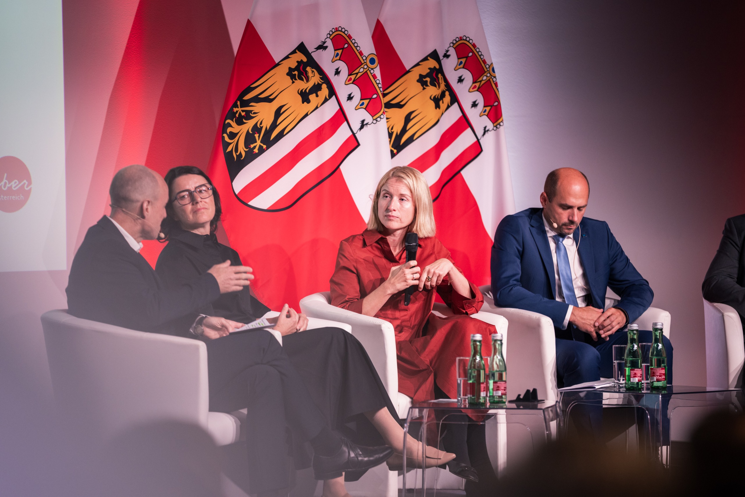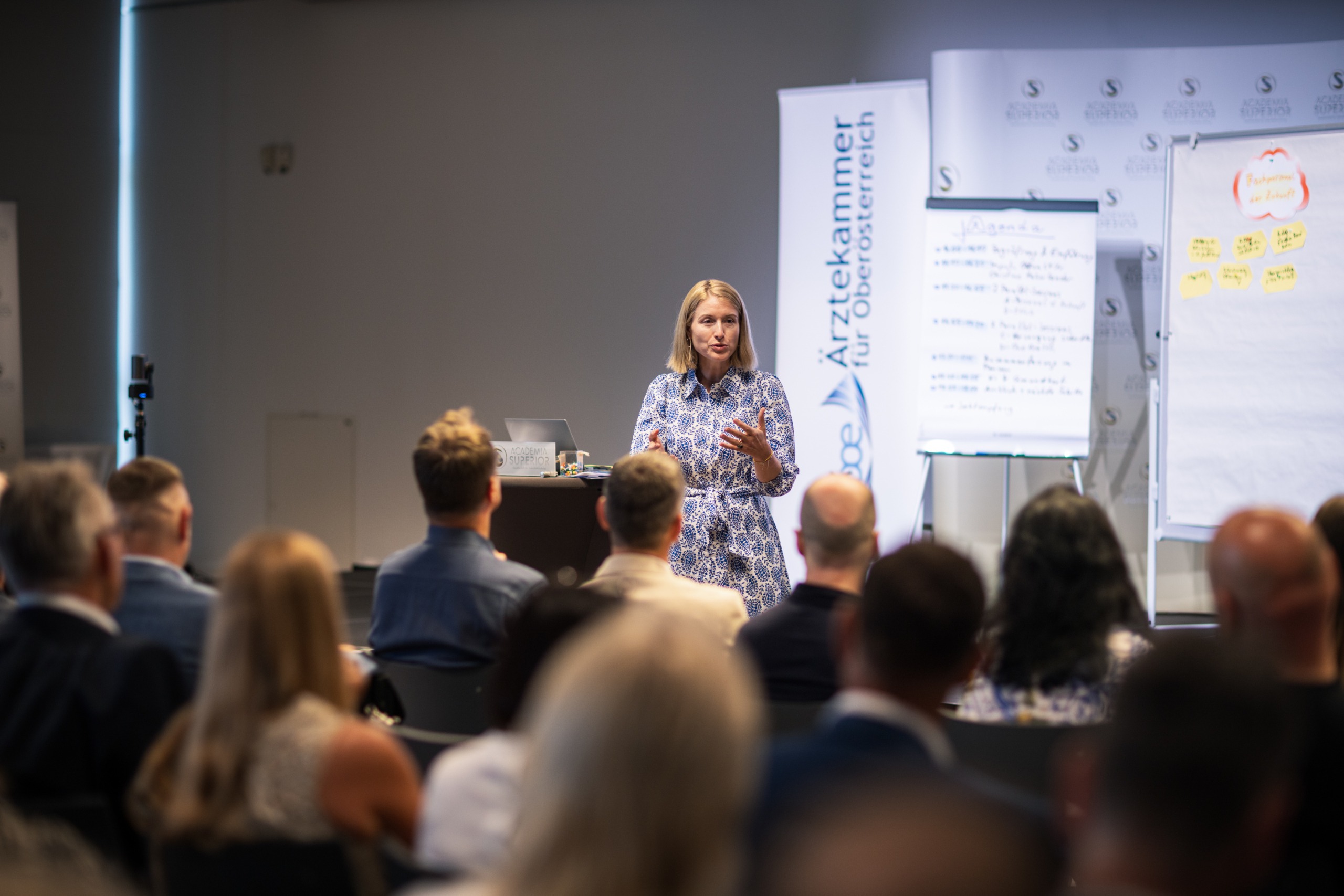 Im Bild: Thomas Märzinger, Landesgeschäftsleiter-Stv. OÖ. Rotes Kreuz / Gesundheitslandesrätin & LH-Stellvertreterin Mag.a Christine Haberlander / Dipl.-Päd. Gottfried Hirz, Präsident des OÖ. Roten Kreuzes bei der Pressekonferenz des OÖ Roten Kreuzes zum Thema „Emergency Eye – Digitale Unterstützung, wenn jede Sekunde zählt“. Aufgenommen am 8. August 2025.