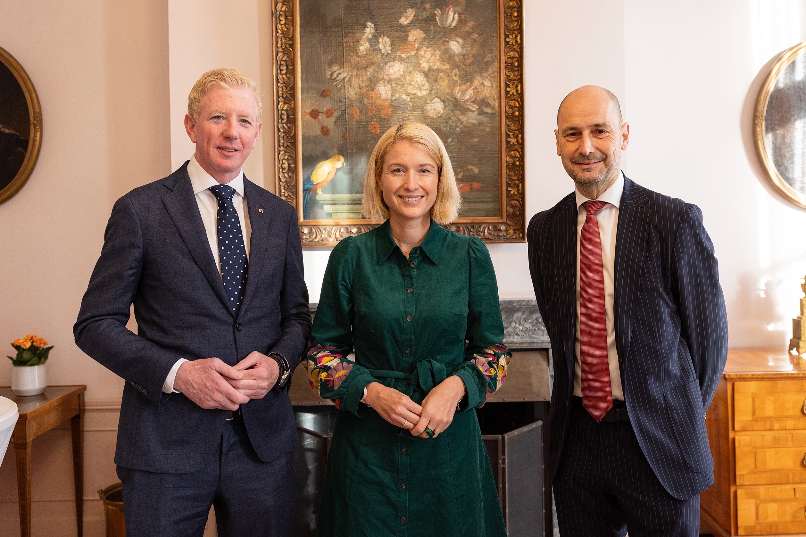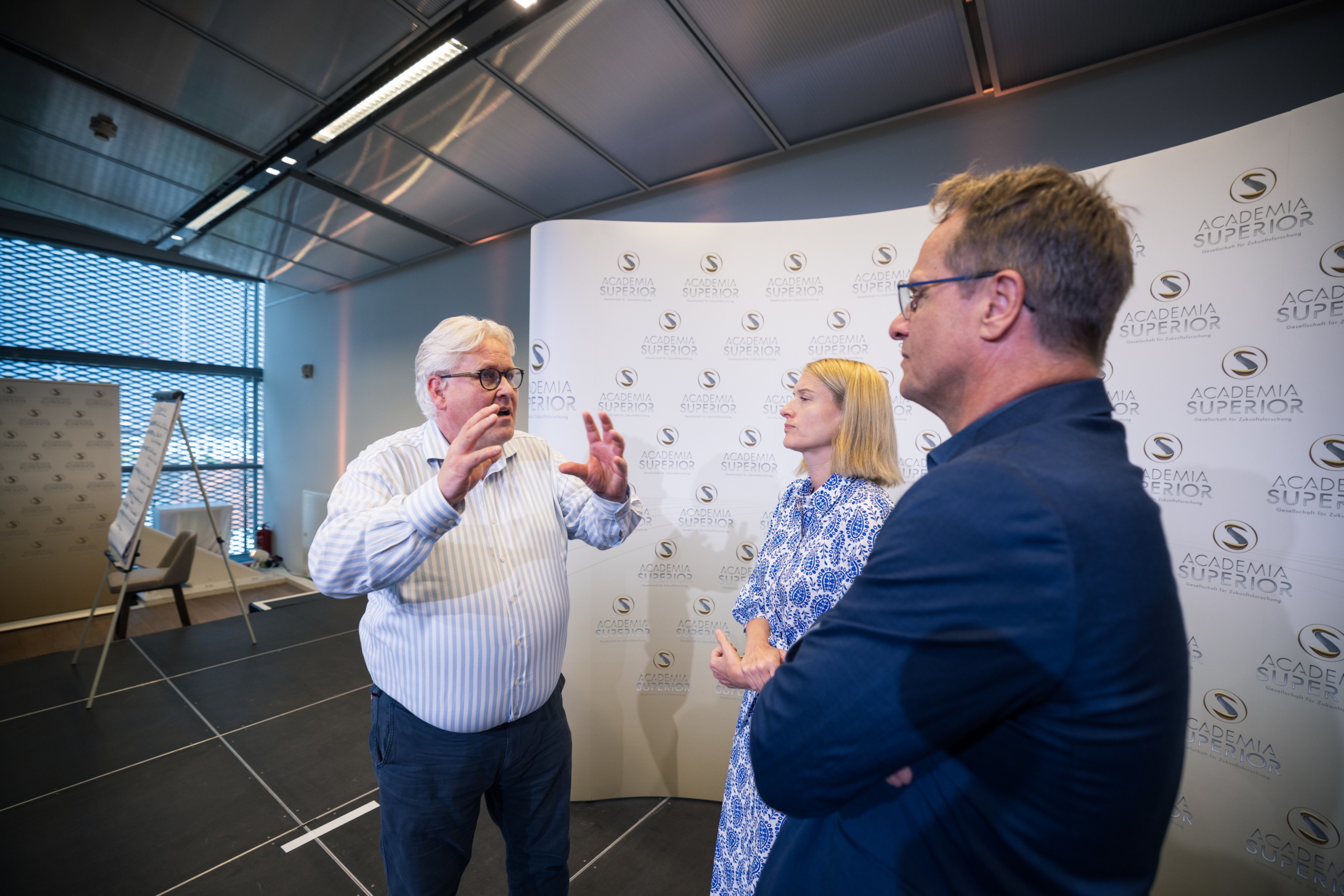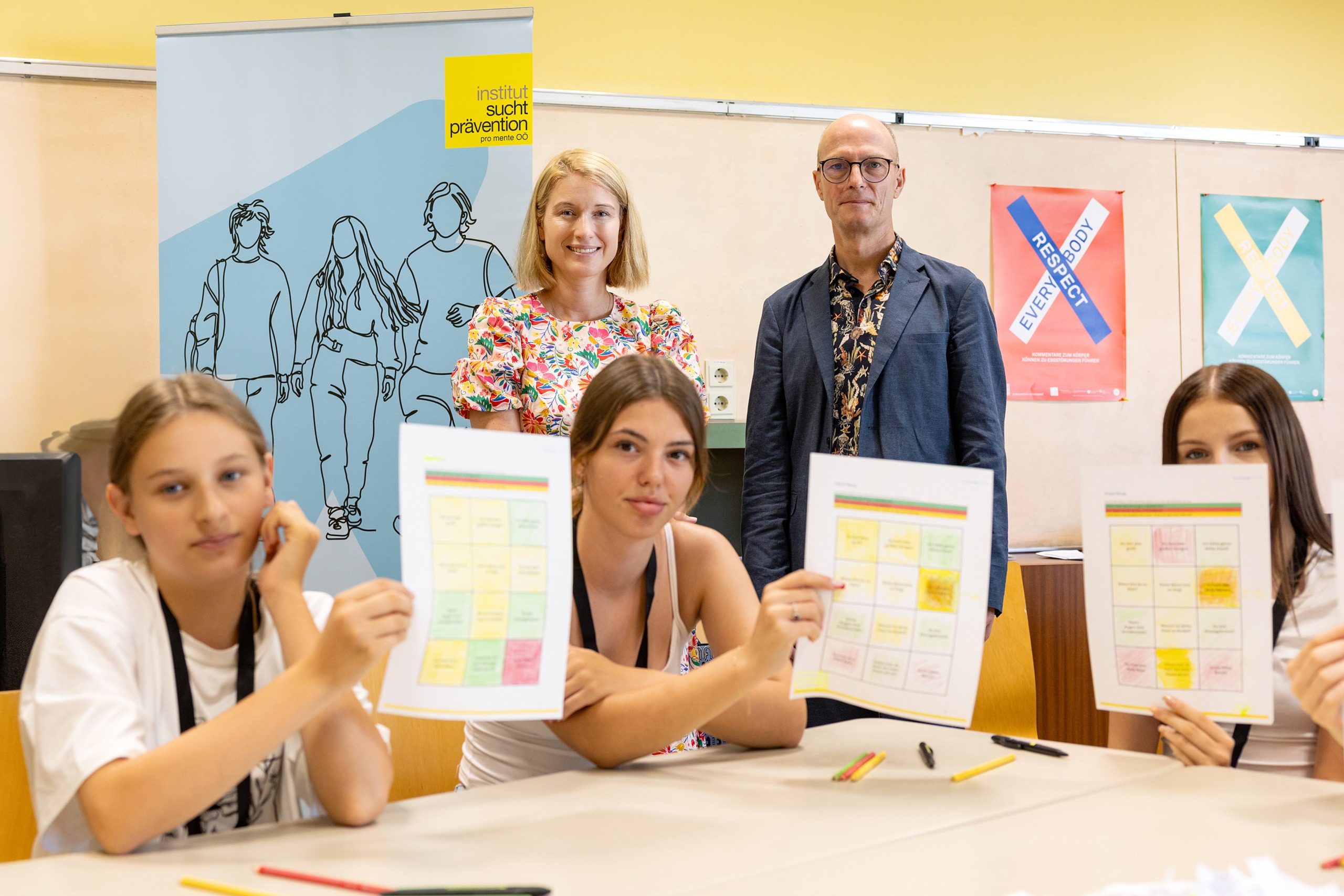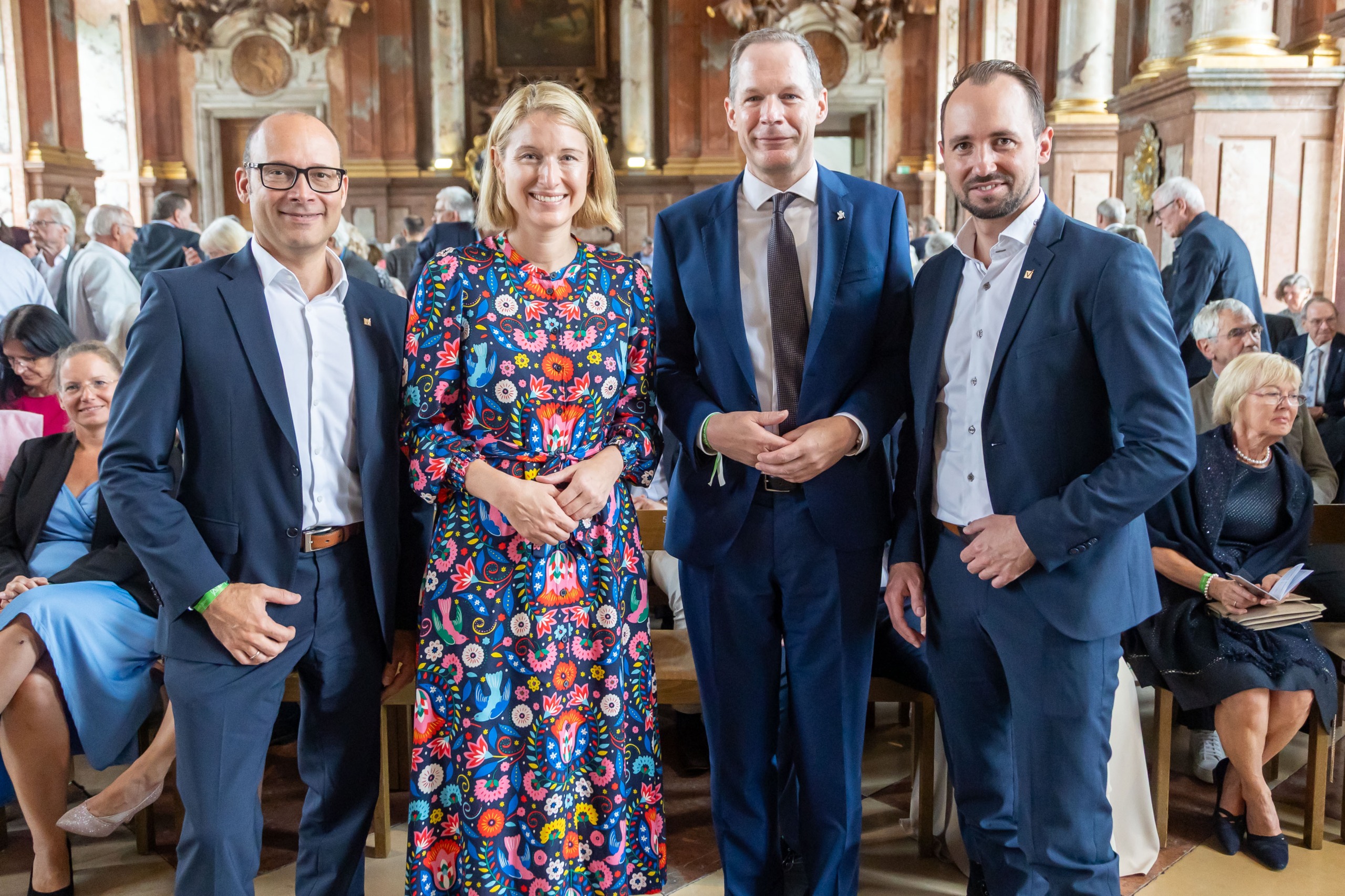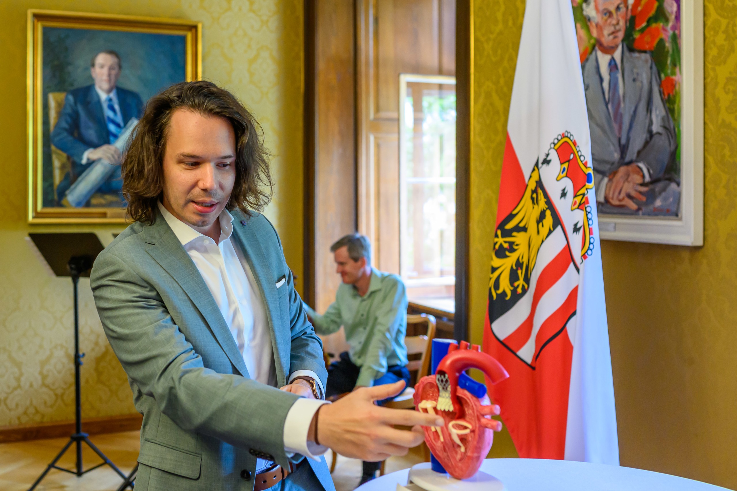 Im Bild: Thomas Märzinger, Landesgeschäftsleiter-Stv. OÖ. Rotes Kreuz / Gesundheitslandesrätin & LH-Stellvertreterin Mag.a Christine Haberlander / Dipl.-Päd. Gottfried Hirz, Präsident des OÖ. Roten Kreuzes bei der Pressekonferenz des OÖ Roten Kreuzes zum Thema „Emergency Eye – Digitale Unterstützung, wenn jede Sekunde zählt“. Aufgenommen am 8. August 2025.